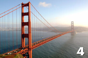 Perhaps the most famous in America, this epic San Francisco bridge soars over the waters of the Golden Gate strait. It stretches for 1.7 miles (2.7km) and was the world’s longest and tallest suspension bridge when first completed in 1937.