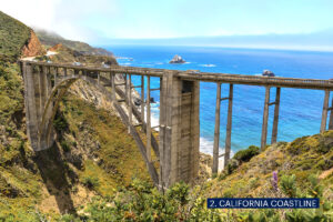 A constant view of snowcapped mountains, beaches, and local wildlife ensures that the two-and-a-half-hour drive is never boring. 2. California Coastline The Pacific Coast Highway in California, also known as Highway 1 or PCH, is probably one of the most well-known scenic drives across the USA. This is the America you often see in Hollywood movies and TV shows, and for good reason.