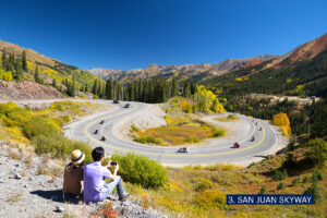 Fall is an ideal time for the multi-colored foliage, but the clear blue skies and green fir trees are perfect year-round. A few mountain towns are dotted throughout the route including Silverton and Telluride. The winding roads can offer a rewarding challenge even for experienced drivers. Source: Mike Demars / nettts.com