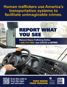 The fight against human trafficking is an ongoing battle, gaining traction as more and more organizations and officials get on board. In December 2021, the Biden Administration released the National Action Plan to Combat Human Trafficking. Investing resources into anti-trafficking policies and programs and ending forced labor in global supply chains are some of the main focuses of the plan. Recently the FMCSA launched its "Your Roads. Their Freedom" campaign to encourage commercial vehicle drivers to pay attention to signs of human trafficking and report anything they see or hear. Posters promoting the campaign are going to rest areas, travel centers, and anywhere else where human trafficking can occur.